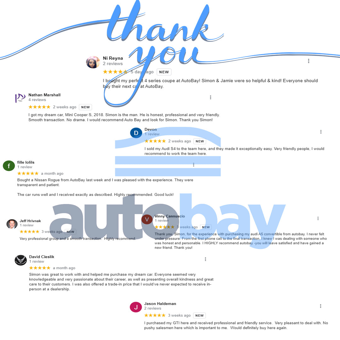 I had an exceptional experience buying from AutoBay online. As a first-time online car buyer, I was nervous about not seeing or driving the vehicle beforehand, but Simon and the AutoBay team were incredibly trustworthy and professional. They patiently answered all my questions by call and text, provided clear pricing, and ensured delivery with the car in excellent condition. Their transparency and customer-focused approach made the process much less stressful than I could’ve ever imagined (I would call myself a control freak). Highly recommend AutoBay for a reliable car-buying experience! Absolutely love this car!