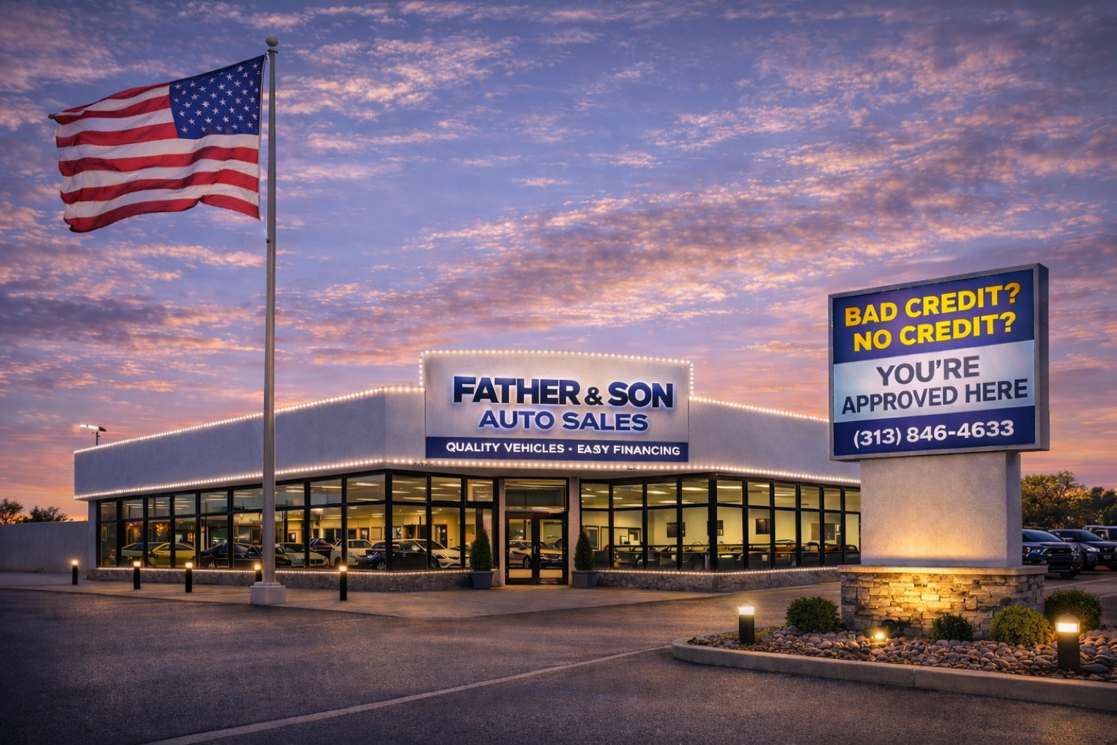 I had a great experience with Father and Son Auto Sales. The team was professional, transparent, and easy to work with from start to finish. They made the process simple, explained everything clearly, and helped me find the right vehicle without any pressure. The dealership itself is clean and well-organized, and you can tell they take pride in what they do. I’d definitely recommend them to anyone looking for a reliable car and a smooth buying experience.
