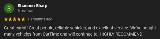 The team at Cartime is always dedicated to making your car buying experience fast, transparent and hassle-free. Come see us today at one of our loactions in Rogers, Centerton or Springdale.
