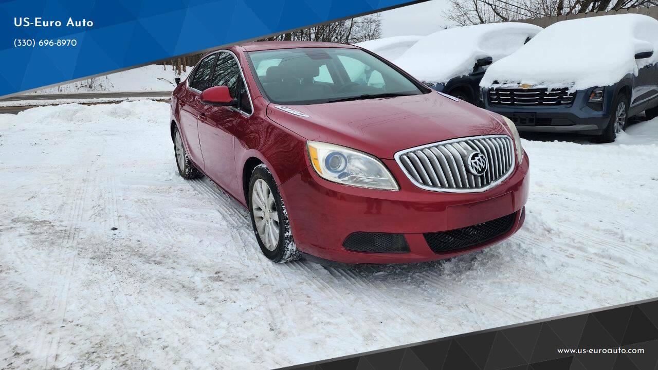 The Buick Verano compact sedan has familiar Buick styling cues like a chrome waterfall grille, blue-tinted projector-beam headlights and porthole appliques on the hood. It seats up to five people and competes with the Acura ILX and Audi A3.