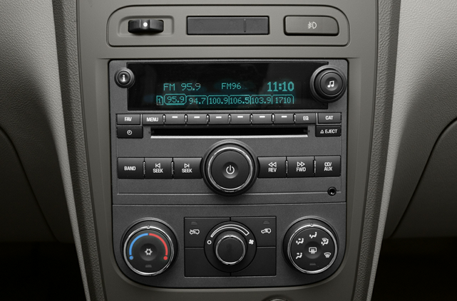 The instrument pod contains a speedometer flanked by a very tiny tachometer. The center stack contains GM’s newly designed audio system. This unit looks good and works well. One nice feature is that the station presets can be any combination of AM, FM or XM stations. The test car was equipped with the optional XM satellite radio. The sound system has an input jack for an iPod or other MP3 player.