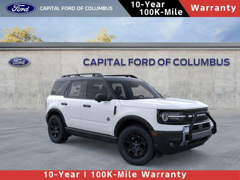 Ford Co-Pilot 360 Assist+ is standard on the 2026 Bronco Sport. This suite of safety technologies includes forward collision warning with pedestrian detection, automatic emergency braking, adaptive cruise control with stop and go, lane-centering steering, blind spot monitors, rear cross-traffic alert with automatic braking, automatic high beams and rear parking sensors. Ford Co-Pilot 360 Assist 2.0 is optional on the Outer Banks and standard on the Badlands; it adds a 360-degree camera system and front parking sensors.