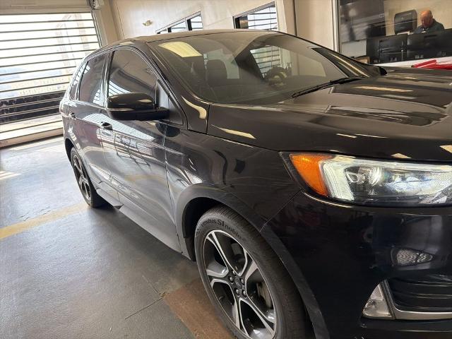 The Ford Edge is a mid-size SUV that seats up to five people. It has a standard 250-horsepower, turbocharged 2.0-liter four-cylinder engine and an available 335-hp, twin-turbo 2.7-liter V-6 that powers the performance-oriented ST trim level. The base engine works with an eight-speed automatic transmission, while the ST has a seven-speed automatic. All-wheel drive is standard. Competitors include the Chevrolet Blazer, Honda Passport and Hyundai Santa Fe.