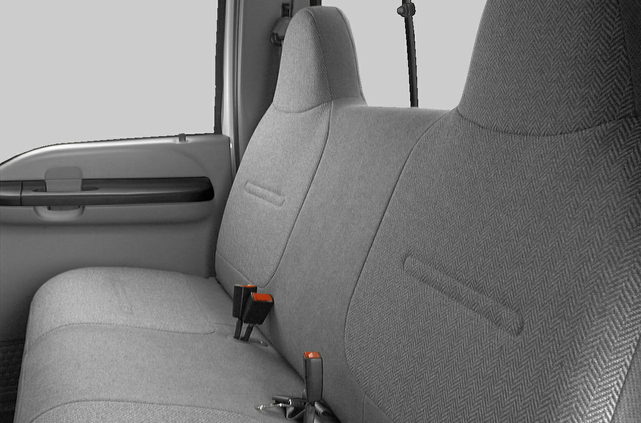 Stability, of course, doesn’t mean comfort. The F250 Lariat is plush — Castano Brown leather seating surfaces and cabin inserts, captain’s chairs up front, lots of stretch room for three rear passengers, premium stereo and power sunroof. But it’s still a no-foolin’ truck fixed with non-independent live axles with leaf springs, shock absorbers, and stabilizer bars in the front and rear suspensions. Translation: It rides like a truck.