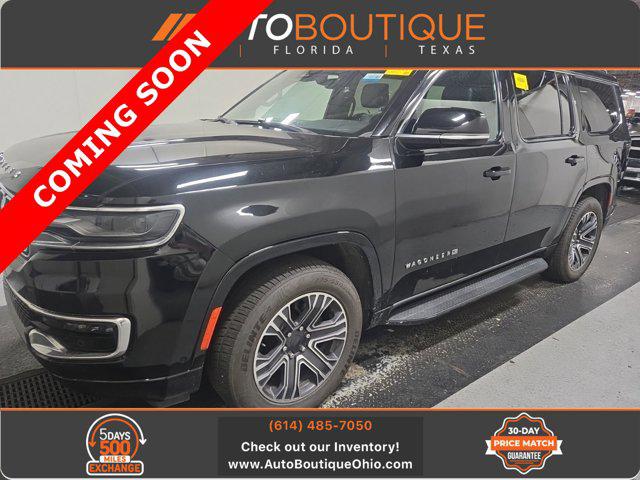 The Jeep Wagoneer is a full-size three-row SUV that comes in regular and new-for-2023 extended-length L versions. The standard Wagoneer is already large, and the L adds another 12 inches of length (7 inches to the wheelbase). The base Wagoneer comes standard with a 392-horsepower, 5.7-liter V8, but all other Wagoneers and Wagoneer Ls get a new-for-2023 twin-turbocharged, 3.0-liter inline-six that produces 420 hp. Rear-wheel drive is standard, with four-wheel drive optional. Wagoneers have an upscale feel and are available with a plethora of comfort and tech features — an optional 10.25-inch touchscreen for the front-seat passenger is an especially cool touch. If you want something even more luxurious, Jeep offers the ritzier-still Grand Wagoneer and Grand Wagoneer L. Wagoneer competitors include the Ford Expedition and Expedition Max, as well as the GMC Yukon and Yukon XL.