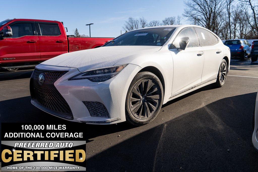 The five-seat LS 500 is Lexus’ flagship full-size luxury sedan. It’s powered by a 416-horsepower, twin-turbocharged 3.5-liter V-6 engine that drives a 10-speed automatic transmission. Rear- and all-wheel-drive versions are offered, along with a gas-electric hybrid drivetrain in the 354-hp LS 500h. The LS competes with the Audi A8, BMW 7 Series and Genesis G90.