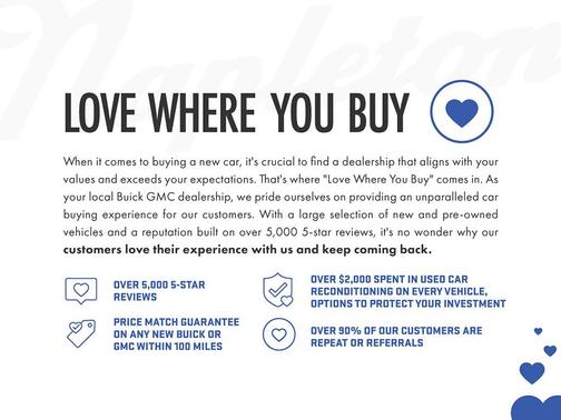 If you're looking to purchase a new or used vehicle, I highly recommend Arlington Heights Buick GMC. This was my first time purchasing a vehicle from a dealership and they were great. From the managers and salesman, all the way to the financing department and cashier, everyone was super nice and helpful. Keep up the good work. I will definitely be back in the future! Thanks again A.H. Buick GMC!