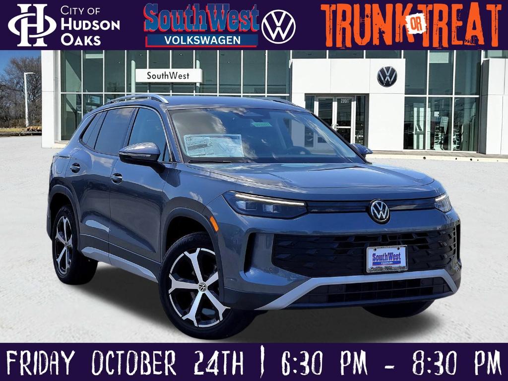 This 2025 Volkswagen Tiguan 2.0T SE in Monterey Blue Pearl comes with the following features: 2.0L TSI DOHC 8-Speed Automatic FWD 18 Alloy wheels, 4-Wheel Disc Brakes, 4-Wheel Independent Suspension, 7 Speakers, ABS brakes, Air Conditioning, AM/FM radio: SiriusXM with 360L, Auto High-beam Headlights, Auto-dimming Rear-View mirror, Automatic temperature control, Brake assist, Bumpers: body-color, Compass, Delay-off headlights, Driver door bin, Driver vanity mirror, Dual front impact airbags, Dual front side impact airbags, Electronic Stability Control, Emergency communication system: VW Car-Net Safe & Secure 5-year, Exterior Parking Camera Rear, Four wheel independent suspension, Front anti-roll bar, Front Bucket Seats, Front Center Armrest, Front dual zone A/C, Front reading lights, Fully automatic headlights, Heated door mirrors, Heated Front Seats, Heated front seats, Illuminated entry, Knee airbag, Leather Shift Knob, Low tire pressure warning, Occupant sensing airbag, Outside temperature display, Overhead airbag, Overhead console, Panic alarm, Passenger door bin, Passenger vanity mirror, Perforated V-Tex Leatherette Seating Surfaces, Power door mirrors, Power driver seat, Power Liftgate, Power steering, Power windows, Radio data system, Radio: MIB4 Composition Media Touchscreen AM/FM, Rain sensing wipers, Rear anti-roll bar, Rear reading lights, Rear seat center armrest, Rear side impact airbag, Rear window defroster, Rear window wiper, Remote keyless entry, Security system, Speed control, Speed-sensing steering, Split folding rear seat, Spoiler, Steering wheel mounted audio controls, Tachometer, Telescoping steering wheel, Tilt steering wheel, Traction control, Trip computer, Turn signal indicator mirrors, Variably intermittent wipers, and Wheels: 19 2-Tone Machined Alloy. 23/30 City/Highway MPG Only 15 minutes west of Fort Worth, SouthWest VW is the dealer that will shoot you straight. If you are looking for a stress free easy car buying experience, then do yourself a favor and come see us. Price includes: $1500 - Retail Customer Bonus